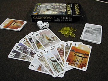 やってみれば思いつきそうで、思いつかないゲームです(同じことは身近な用具ですぐできるのですが)。ギャンブル系にしてはめずらしく、大味でなく小体で粋な感じさえします。ちょいとはったりかましてぇなあ、なんてときにおつなゲームですね。遊び人カサノバといったところでしょうか。