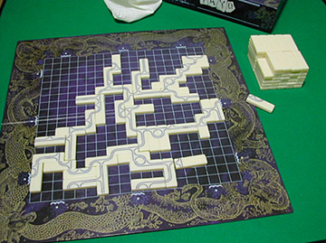 雰囲気はともかく、ゲーム性は非テーマ的ですからアブストラクトといえます。しかし、タイルの引きは運ですので先読みが必要というわけでもありません。とりあえず引いてみて、盤面のあちこちに当てはめてみて考えるという展開になるようです。ちと物理的に重いですが、豪華なタイルも嬉しいですね。