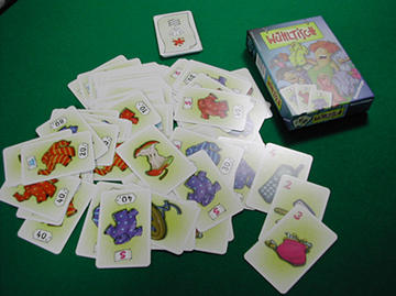 「アッフェン・ラッフェン」に進行は似ています。マッチングの要素は「セット」に似ているでしょうか。スピード勝負とはいえ、落ち着きが肝心です。シャツ・カードの中には、落とし物が混じっており、「入れ歯」カードなどは拾っても無価値ですが、「携帯電話」カードなどのように、とっておくとラウンド終了後ポイントになるものがあって馬鹿になりません。ゲームの得手不得手はともかくとして、不思議なことに、当会ではたいてい同じ人が沢山拾い物をする傾向にあります。