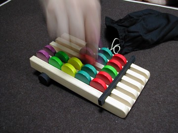 最初は私がコマを袋からひいてレーンに落とす役回り。美化委員が、落とされたコマをひとつ選んで移動させる役回り。案の定、ゲームの序盤から美化委員は次から次へと同じ色のコマを横一列に並べることに成功。終わってみれば、満点(5点)を採られた列もあったものの、まあまあ善戦しました。次に役回りを変えます。立場が違うと見えるものも違うなあ。満点の列を作ることにこだわらずに、4点取れる列を増やすことを考えよう、という戦略で臨みました・・・結果は、わたくしの勝利です!これは嬉しい!!Hyle7の封印も解こうかしら!!!