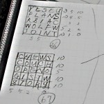 えーと、ややこしいので何とか思い出すと、このゲームを最初に知ったのはかつてペンギンで出ていたD. プリチャードの『Brain Games』なんだけど、それでは「Word Squares」という名前になっていた。D. パーレットの『The Penguin Book of Word Games』などを見るとこのゲームの異名やヴァリエーションがかなりあるが、要はそれだけ一般的なゲームだということです。ルイス・キャロルも好んだとか。相当奥が深いとみた。結果は惨敗だった。